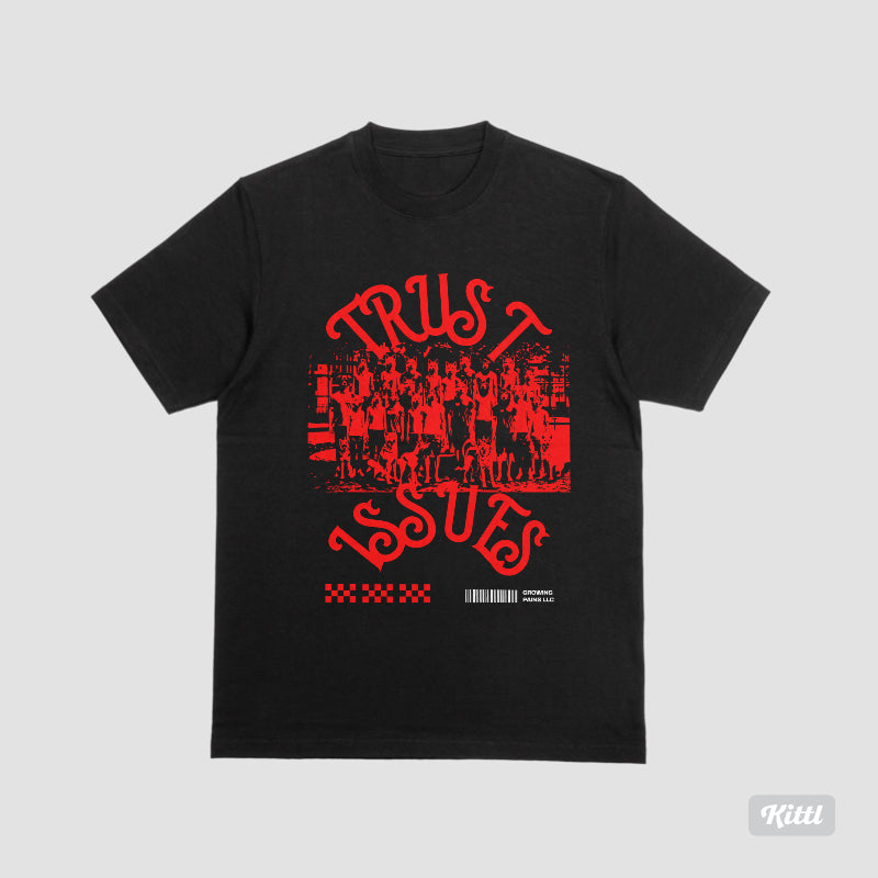 "Trust Issues" - Wear this t-shirt as a statement piece that challenges perceptions. With its bold typography and minimalist design, it sparks conversations about vulnerability, skepticism, and the complexities of human relationships. Flaunt your individuality and invite others to ponder the layers beneath the surface.