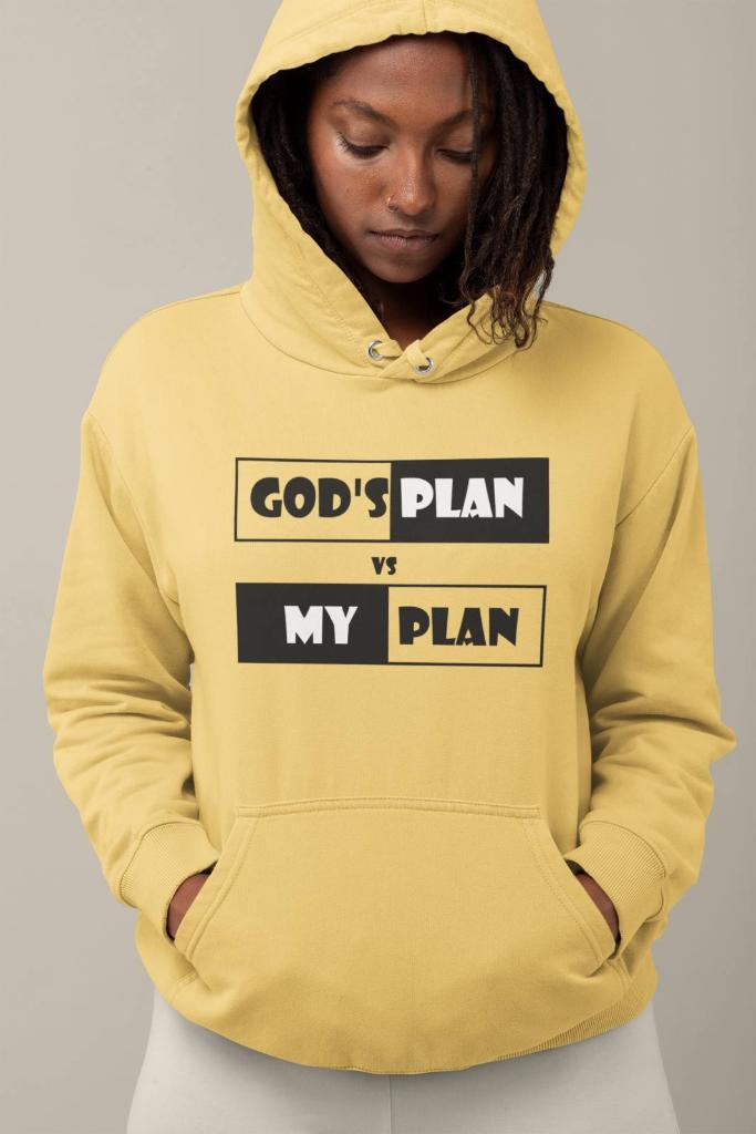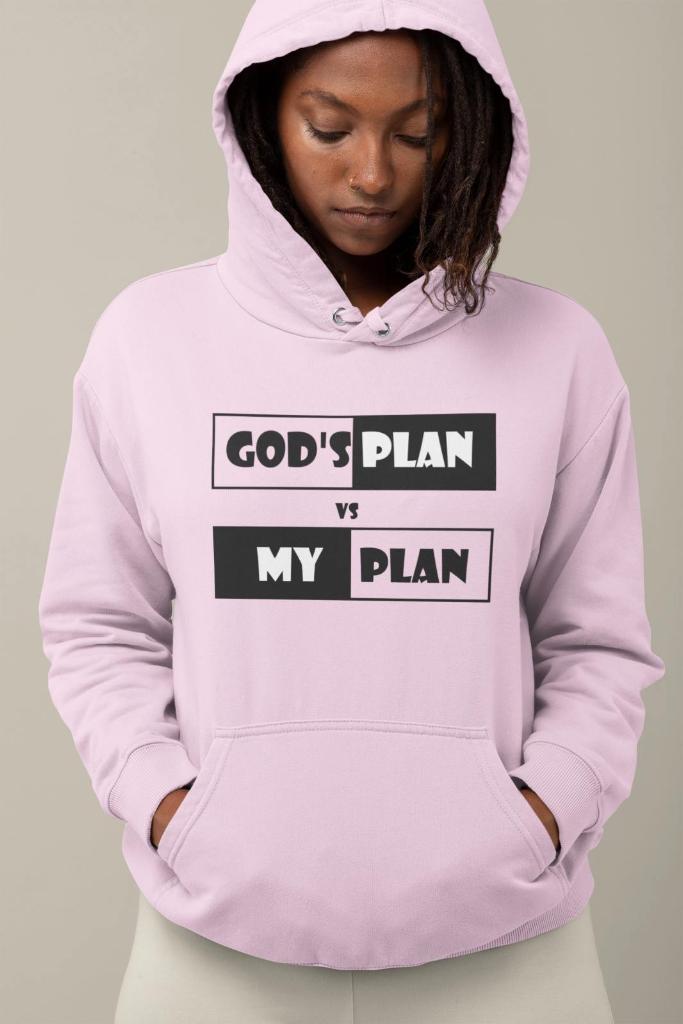"Embrace the dichotomy with our 'My Plan vs God's Plan' hoodie – a versatile and comfortable statement piece that reflects the ongoing interplay between personal aspirations and the grander design of the universe. Crafted with quality materials, this hoodie is a tangible reminder that sometimes the best outcomes unfold when we find harmony between our plans and the divine path."